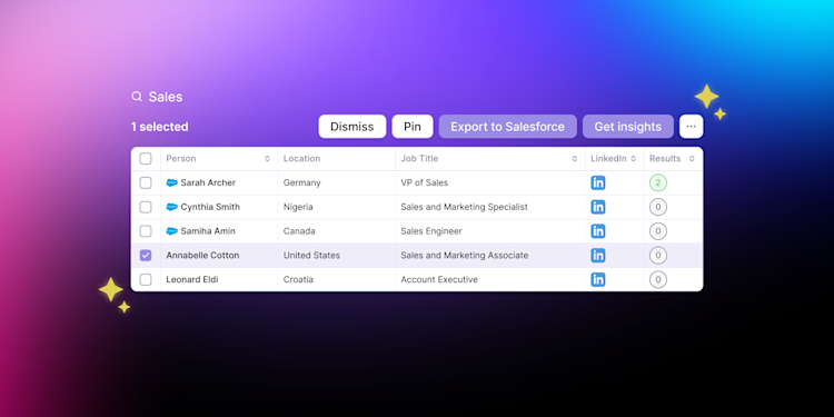 In our April release, we focused on enabling users to sync, search, and monitor. Using our new Salesforce integration, you can now sync your pipeline into Tactic, search for people and keywords, and have Tactic continuously monitor for new content related to your pipeline.