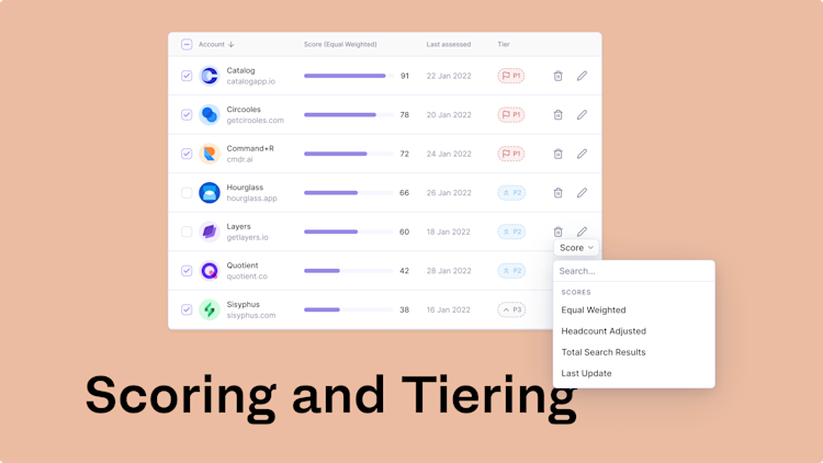 You can now score accounts with new data points like industry and founded year, and sync the data to Hubspot and Salesforce.